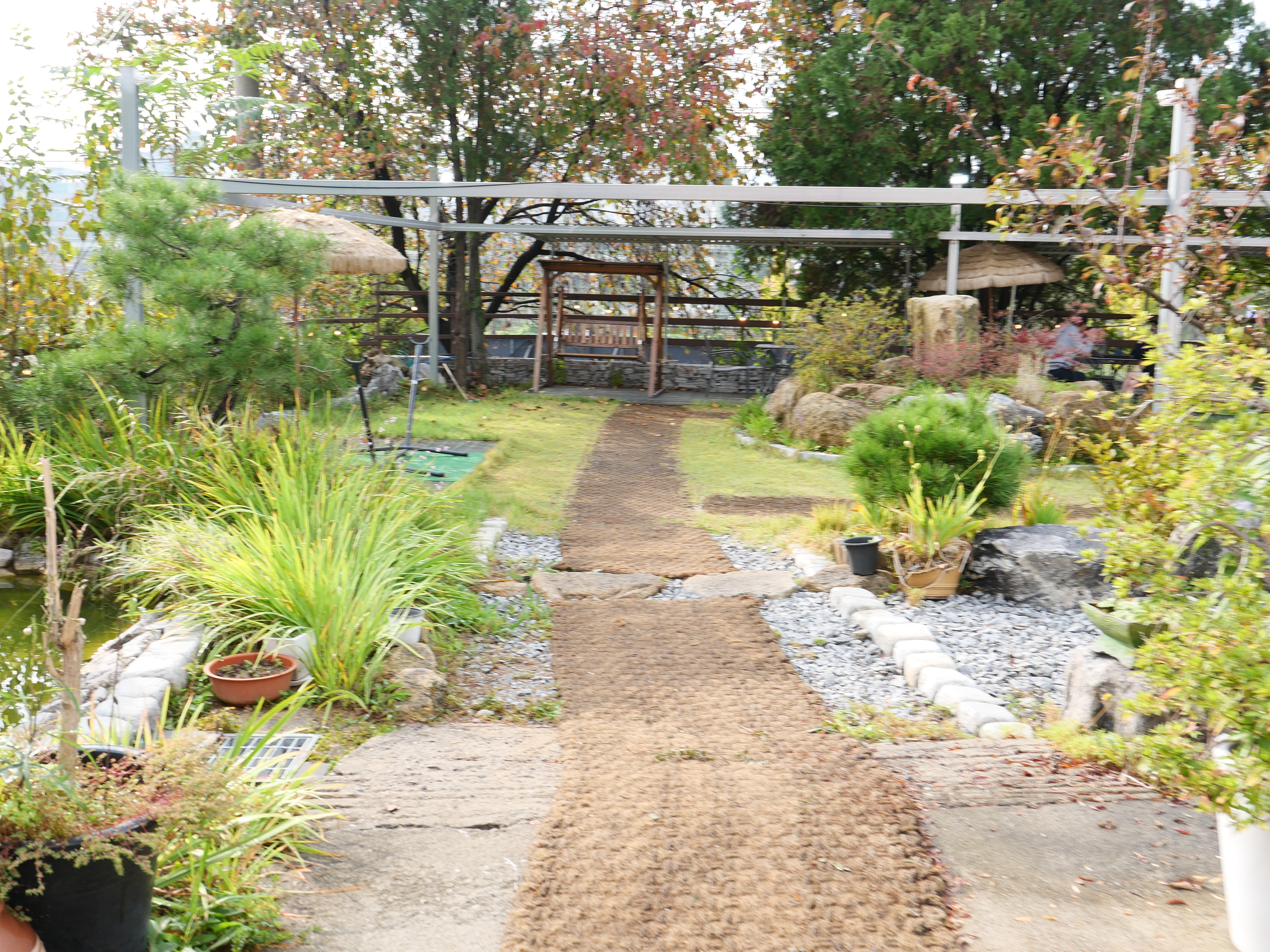 건물 옆으로는 정원도 있었는데 테이블이 있어 야외 공간 자체를 즐기기도 좋고,