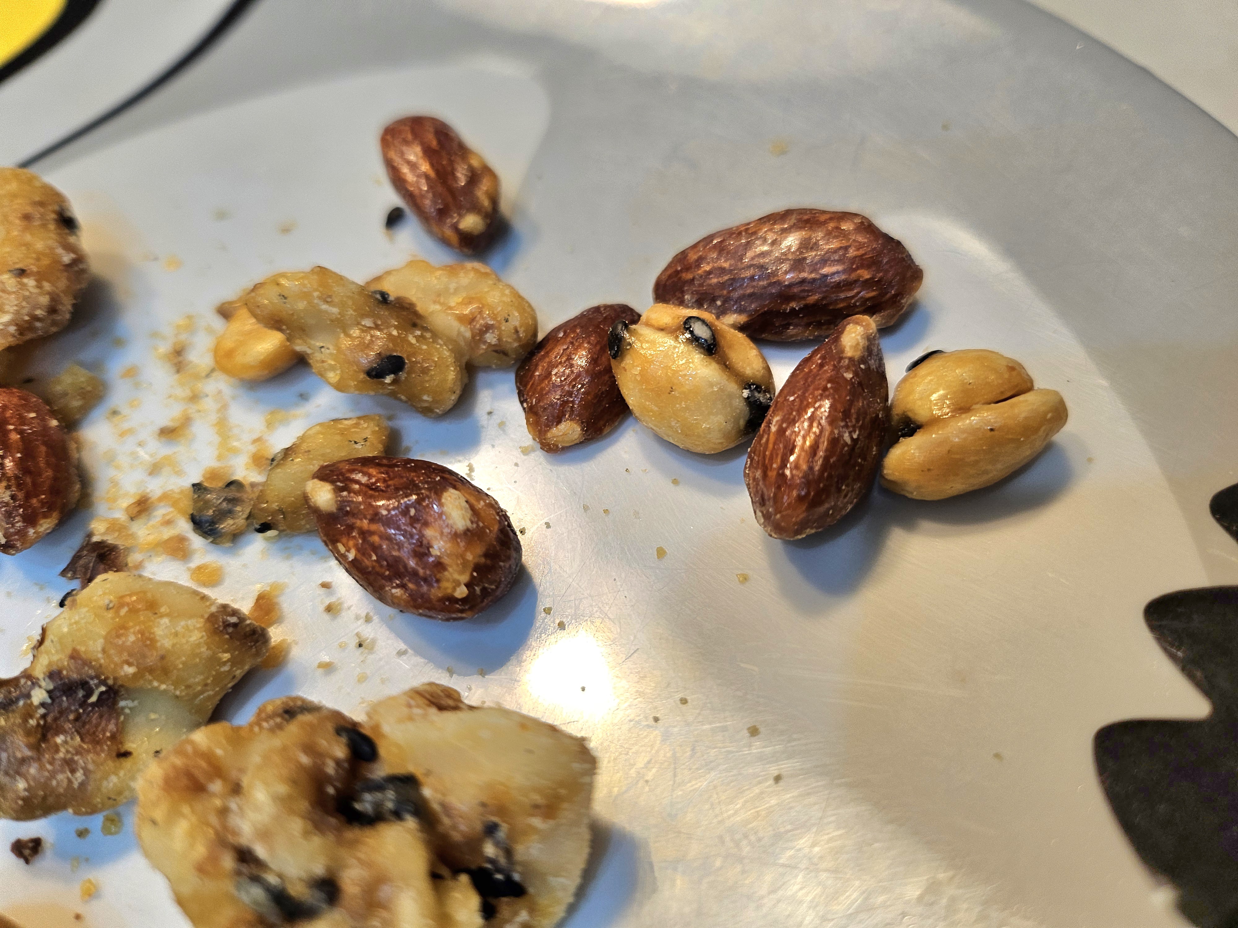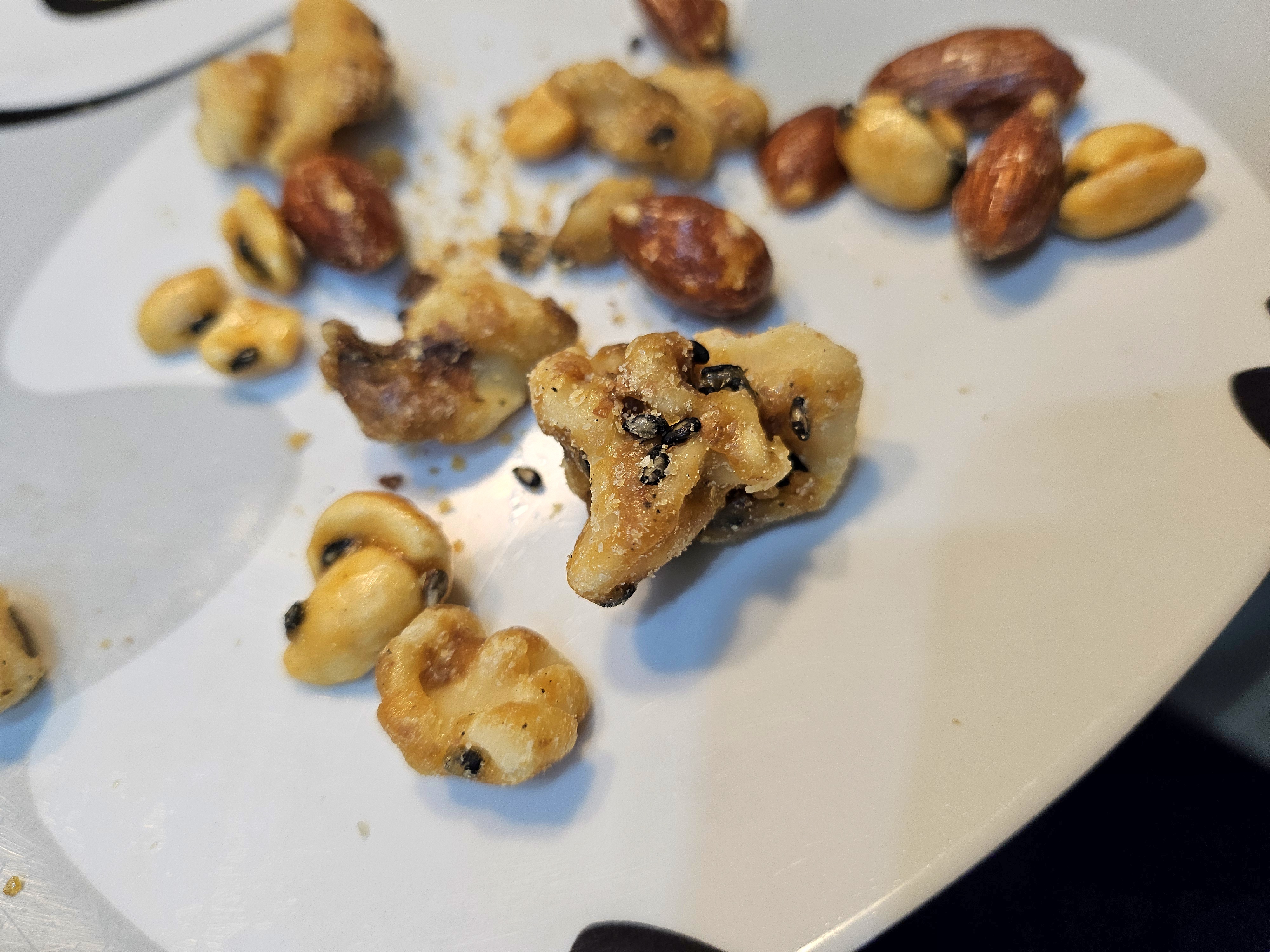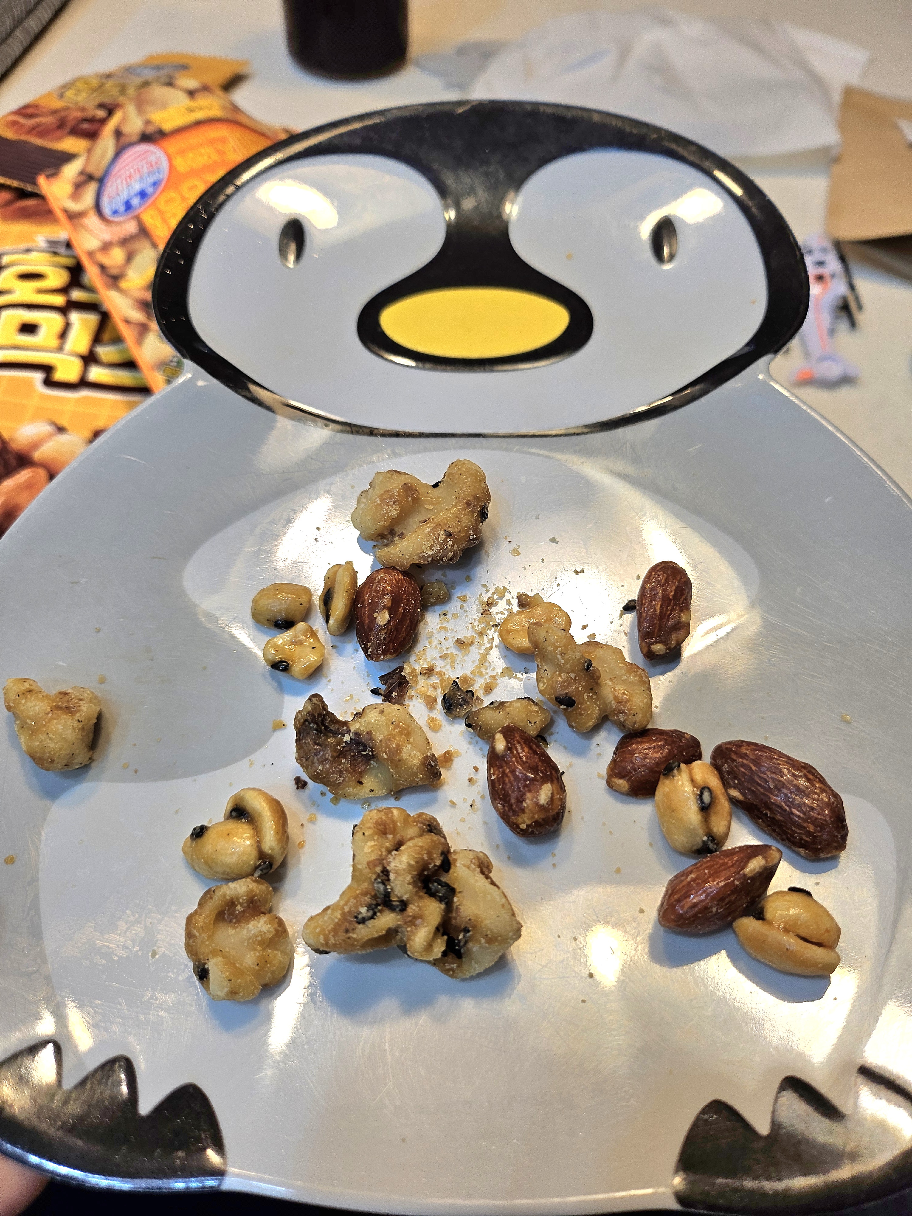 아몬드랑 땅콩은 반짝거리는 설탕(?)코팅되어있고 호두는 그런 느낌이 아니라 아몬드랑 땅콩은 딱딱한 느낌이 살짝 있지만,