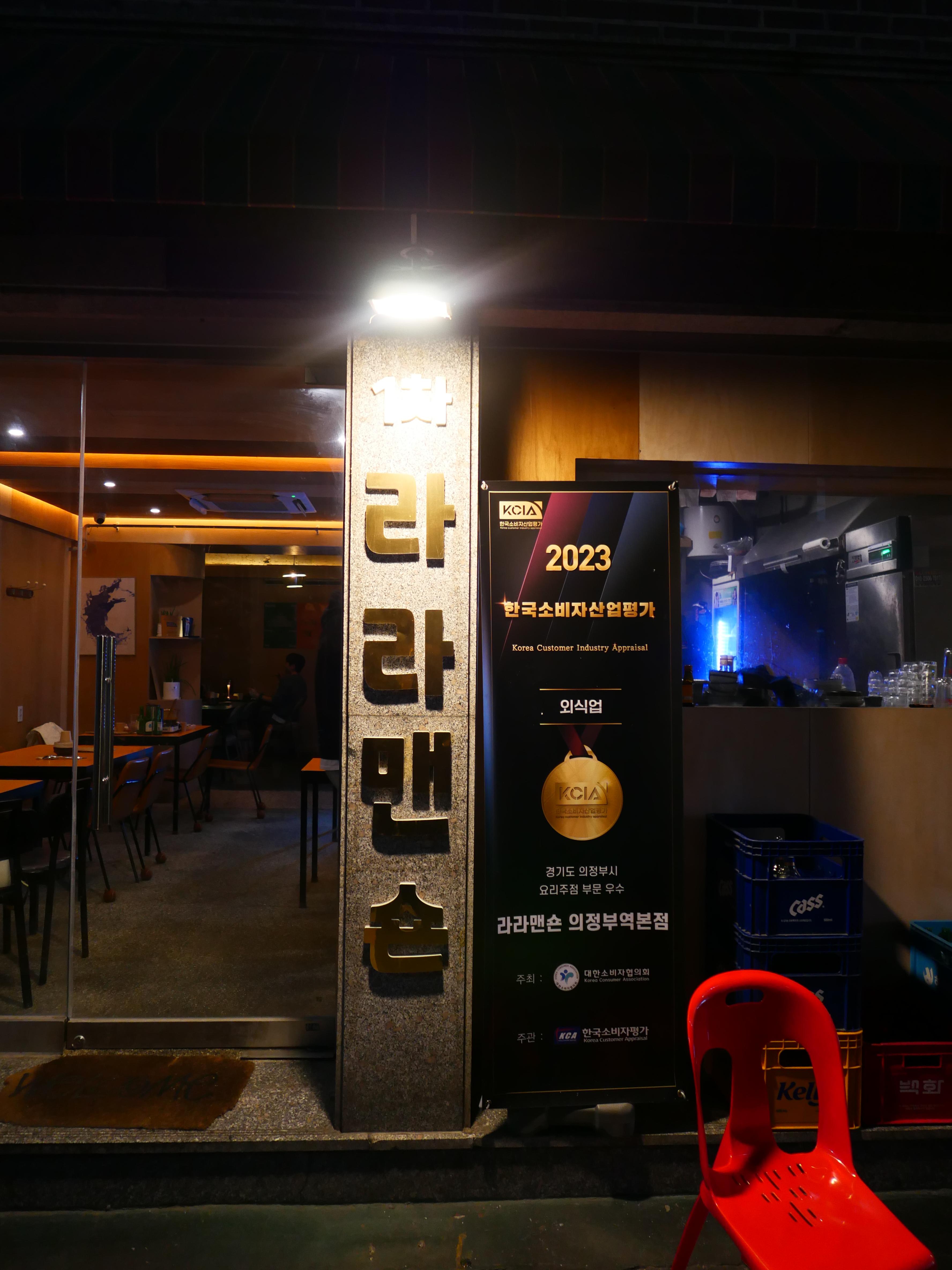 의정부역에서 도보로 10분 정도 걸으니 라라맨숀 의정부역본점이라는 술집이 나온다. 골목에 있음. 가다보니 나온 게 아니라 미리 알고 찾아간거지! 인터넷으로 찾아보니 전국적으로 한 3-4개 매장이 있는 것 같다. 요즘엔 어떤 가게를 차리든 프랜차이즈화 하려고 맨 처음 만든 지점에 '~본점'을 많이들 붙이던데, 여기가 1바구먼! 대단허이. 한국소비자산업평가에서 라라맨숀 의정부역본점이 의정부시 요리주점 부문에서 우수하다는 평을 받았다고 엑스배너가 있는게 이제야 보이네 ㅋ 갔을 땐 못봤는데? ㅋ 실내는 생각보다 넓다. 베이컨 수제 라구 파스타. 치즈가루가 성의 있게(?) 뿌려져있고 바게트도 두 덩이 주네. 양은 무지 많다. 맛있는데 되게 자극적인 맛임. 조금 지나니 짜다. 그래도 맛있긴 함 ㅋ 소스 가득한 파스..