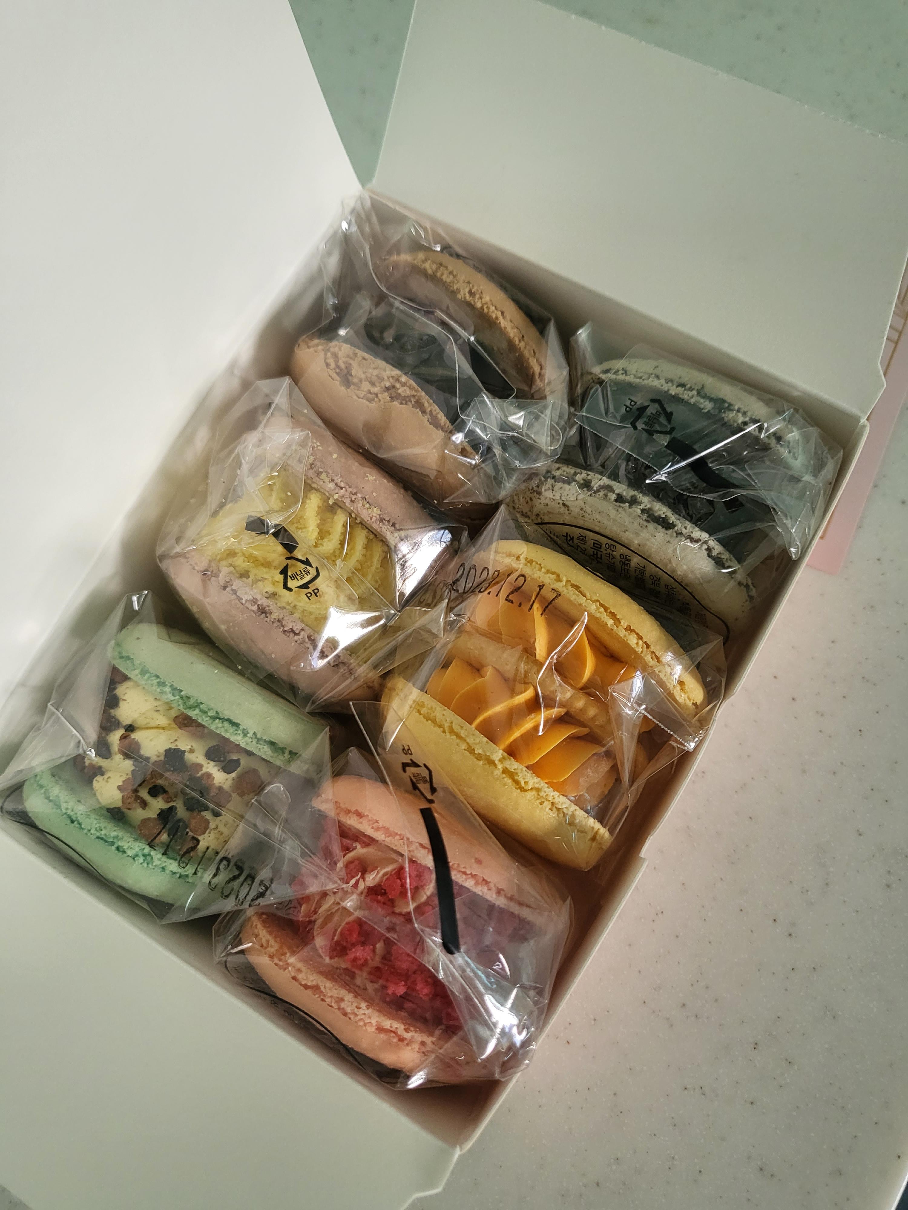 친구한테 생일선물로 받은 뚱카롱 6구 in 카카오 선물하기. 처음에 6구인줄 모르고 그냥 이미지컷만 보고 양 많은 줄 알았다. 배송 왔는데 귀엽게 미니미함. 보관방법 등이 적혀있는 종이와 함께 배송. 스티로폼 아이스박스에 아이스팩과 함께 안전하게 옴. 뚱뚱한 마카롱이 꽉 찬 박스! 왼쪽 중간에 있는 거 반쪽 먹어봤는데 자색고구마 맛이야. 귀엽고 난리ㅋㅋㅋ 찾아보니 3구 9,900원 6구 15,200원 12구 23,900원. 6구는 생일선물용은 아닌 것 같지만 나는 그 친구 선물 결국 못 했어서.. 그리고 그 친구는 최근 나 배도라지ㅋㅋ도 사줬어서 ㅠㅠ 그저 고맙군!